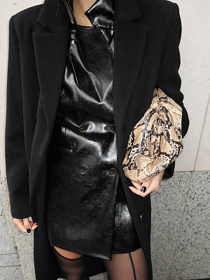 Пальто из искусственной кожи 1-12762-1 — дерзкий акцент: глянцевая поверхность, чёткие линии, бунтарский чёрный, от которого веет уверенностью и лёгкой опасностью.